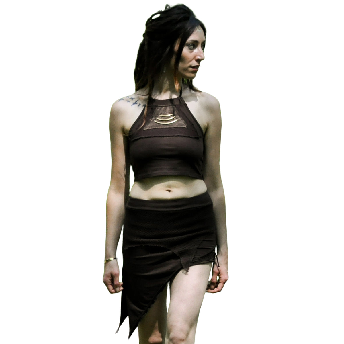 Asymmetrischer Minirock - mit Netz und Cut-Out Elementen - braun