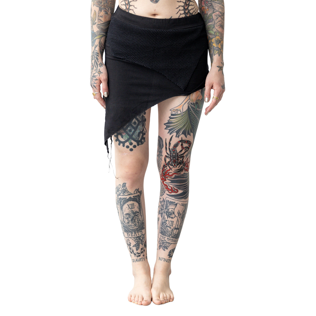 Asymmetrischer Minirock - mit Netz und Cut-Out Elementen - schwarz