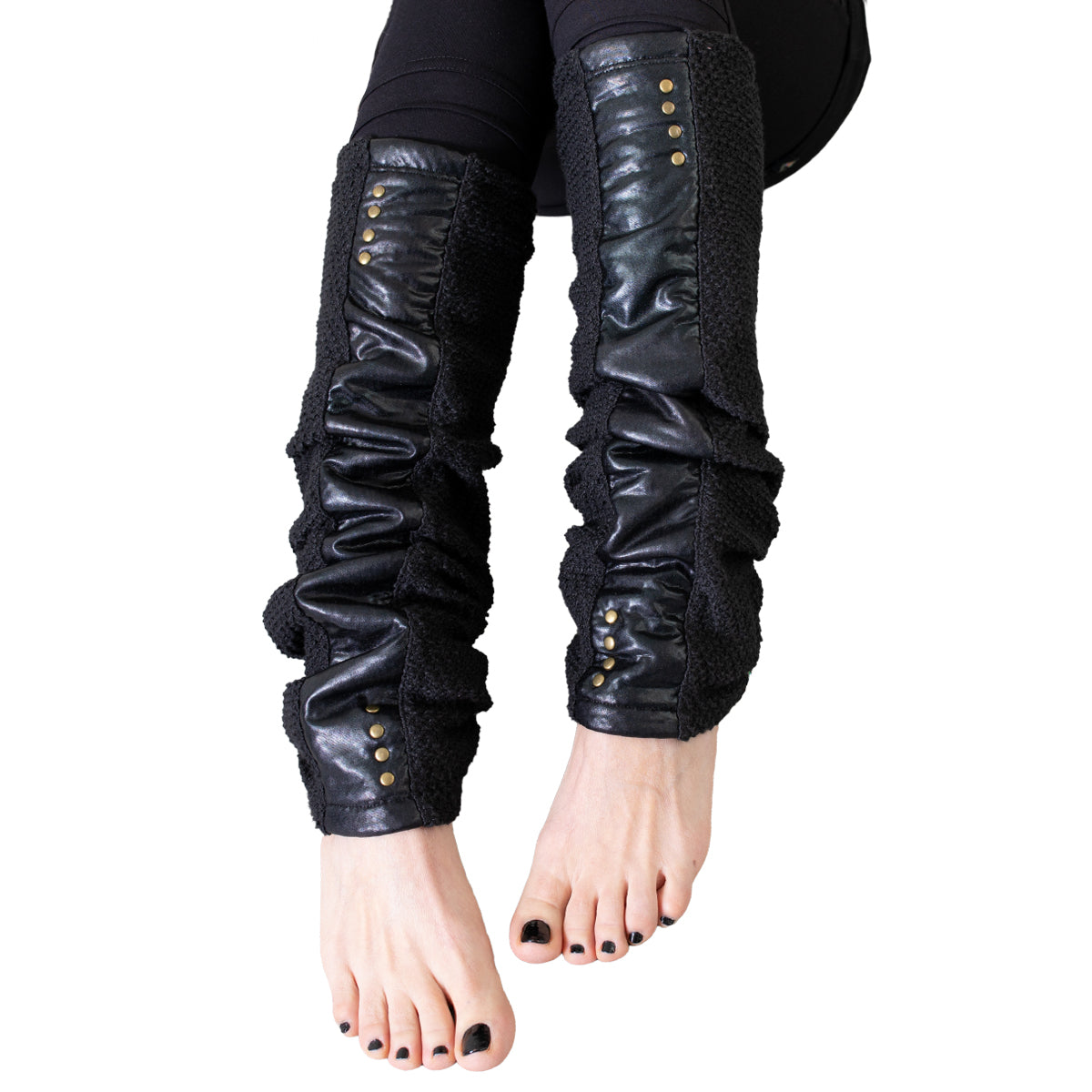 Warme Beinstulpen mit Glänzstoff und Nieten.