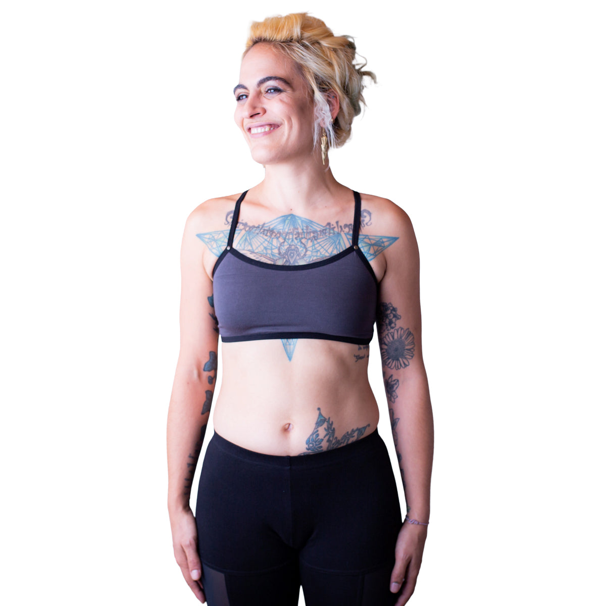 Black String Bra - mit Nieten - Bra Top, Bralette, Bustier, Sport BH, Yoga Top - grau