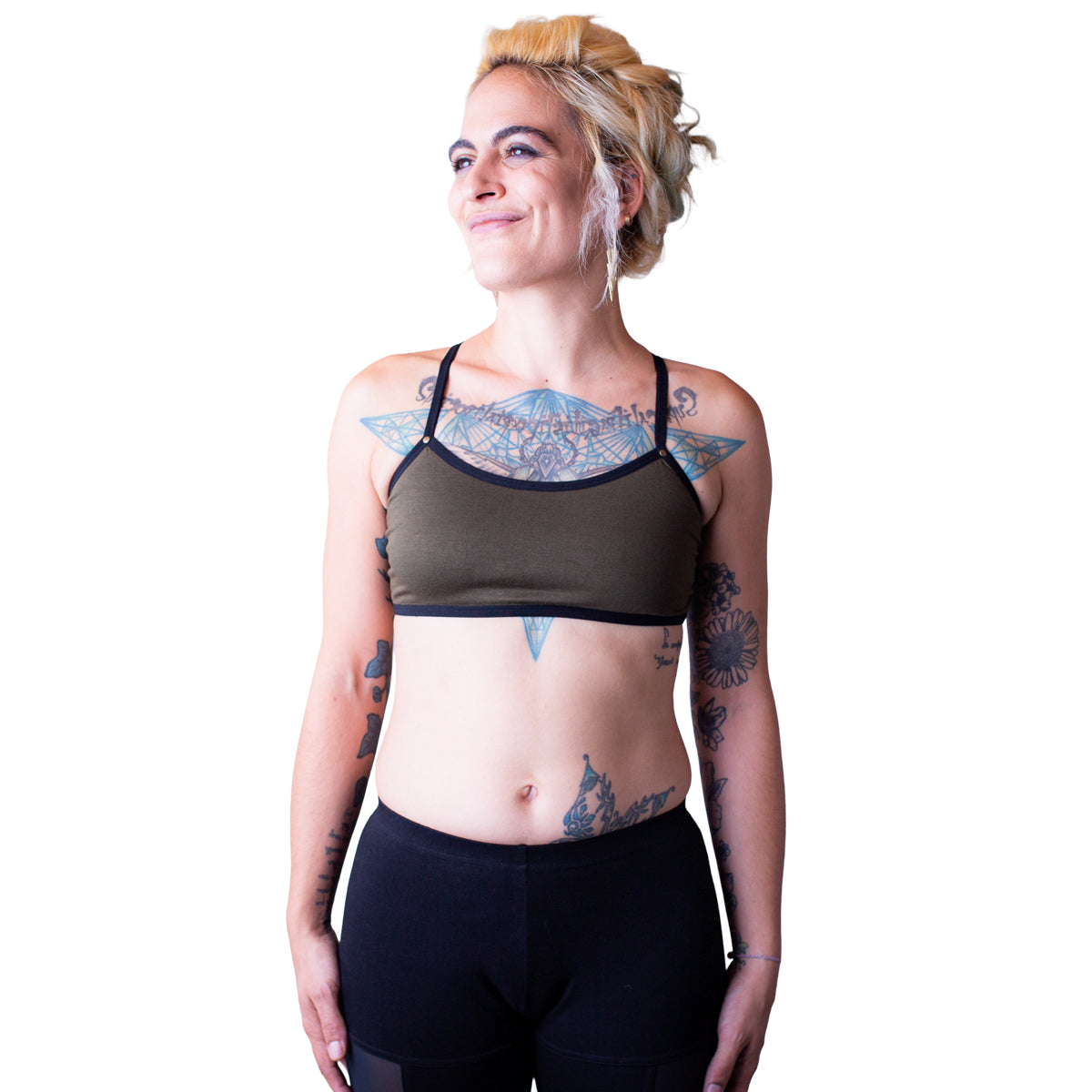 Black String Bra - mit Nieten - Bra Top, Bralette, Bustier, Sport BH, Yoga Top - olivgrün