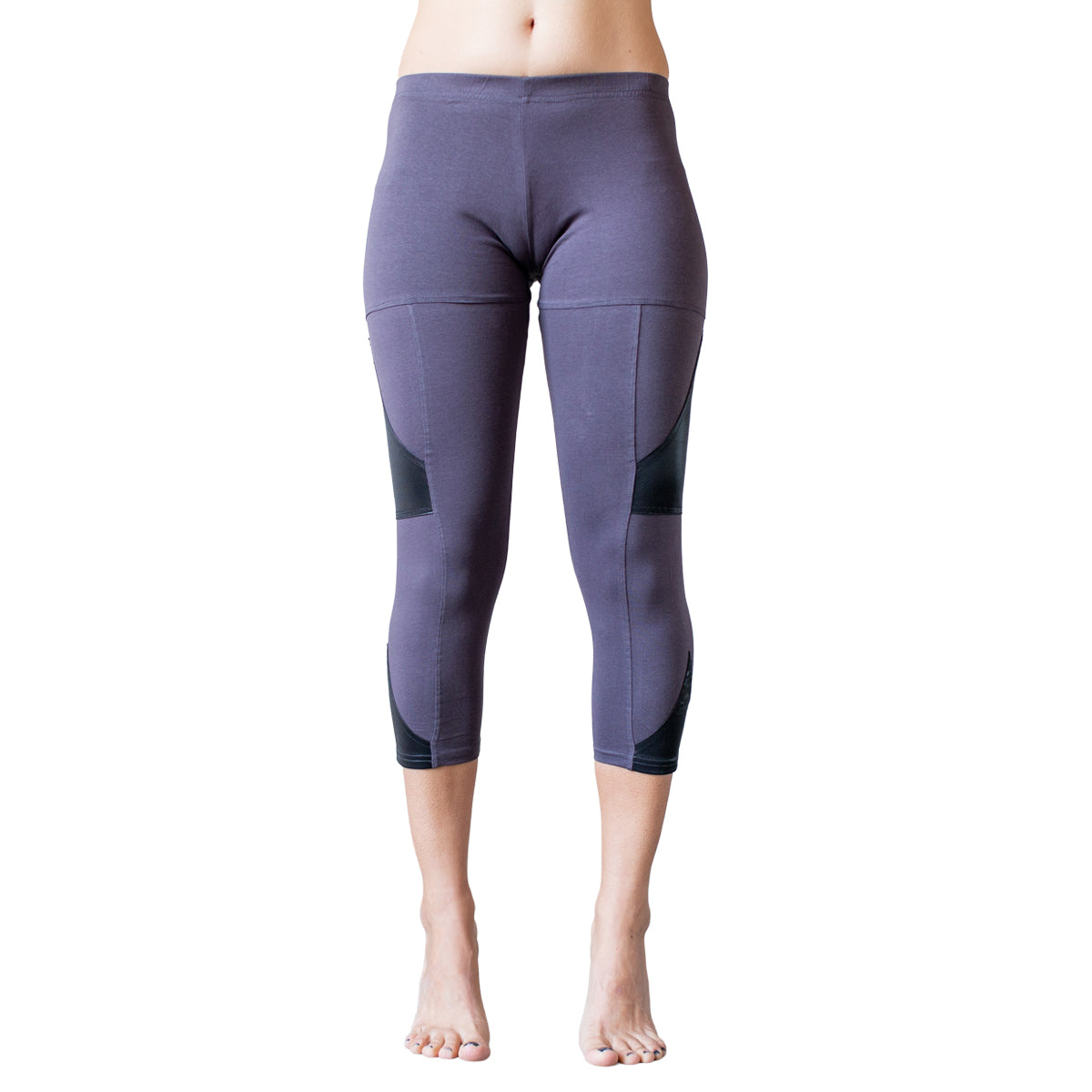 Dreiviertel Leggings mit Kunstleder-Elementen - grau