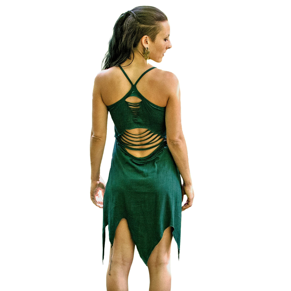 Elastisches Zipfelkleid, Trägerkleid mit Perlen und Glöckchen - waldgrün