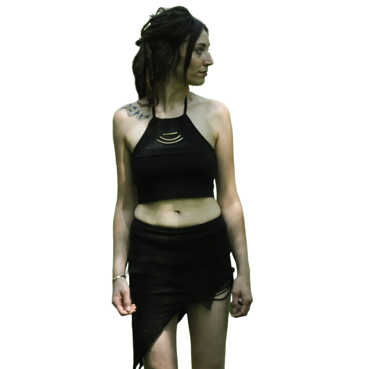 Neckholder Crop Top, Kurztop mit Messingdetails - schwarz
