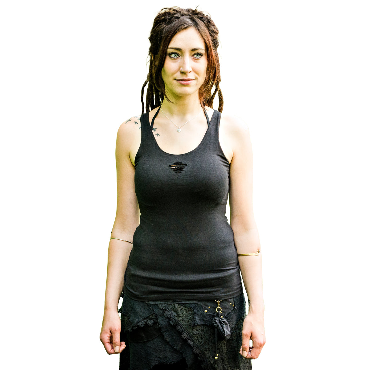 Eng anliegendes Racerback Top mit Cuts und Messingperlen.