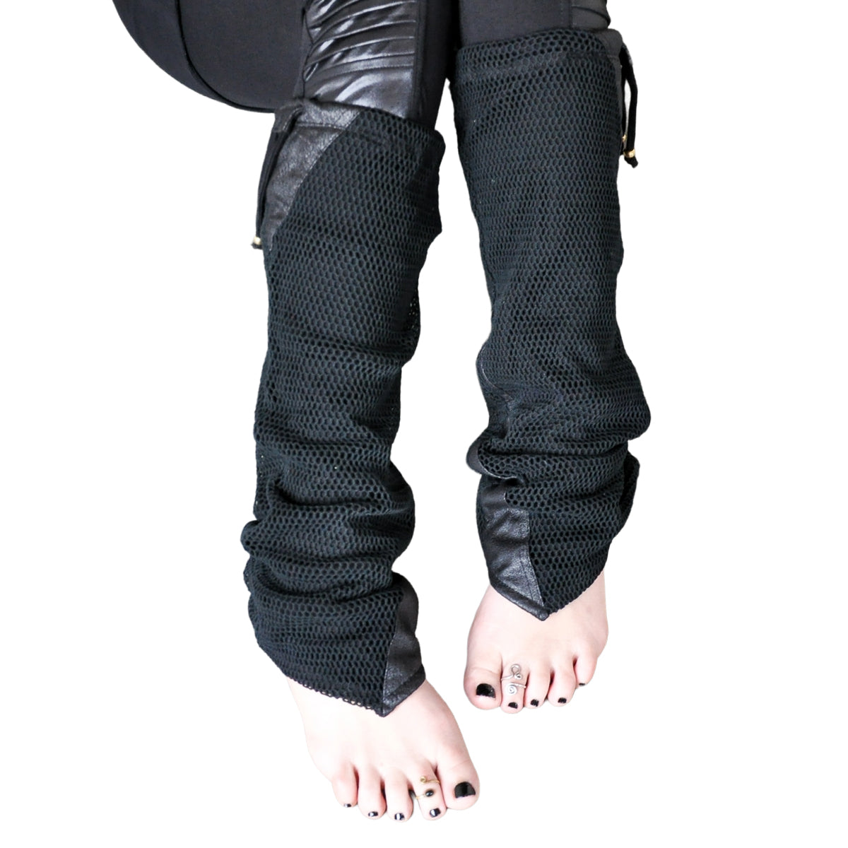 Stulpen in Netzoptik, Beinstulpen mit Perlen und Kunstleder - schwarz