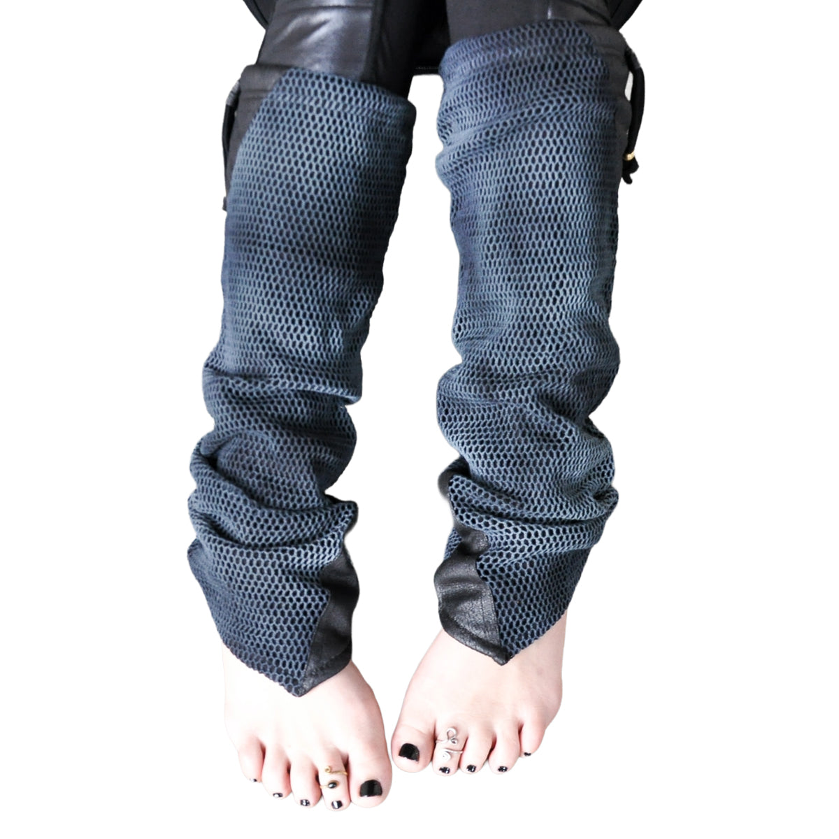 Beinstulpen in Netzoptik mit Zugband und Messingperlen.