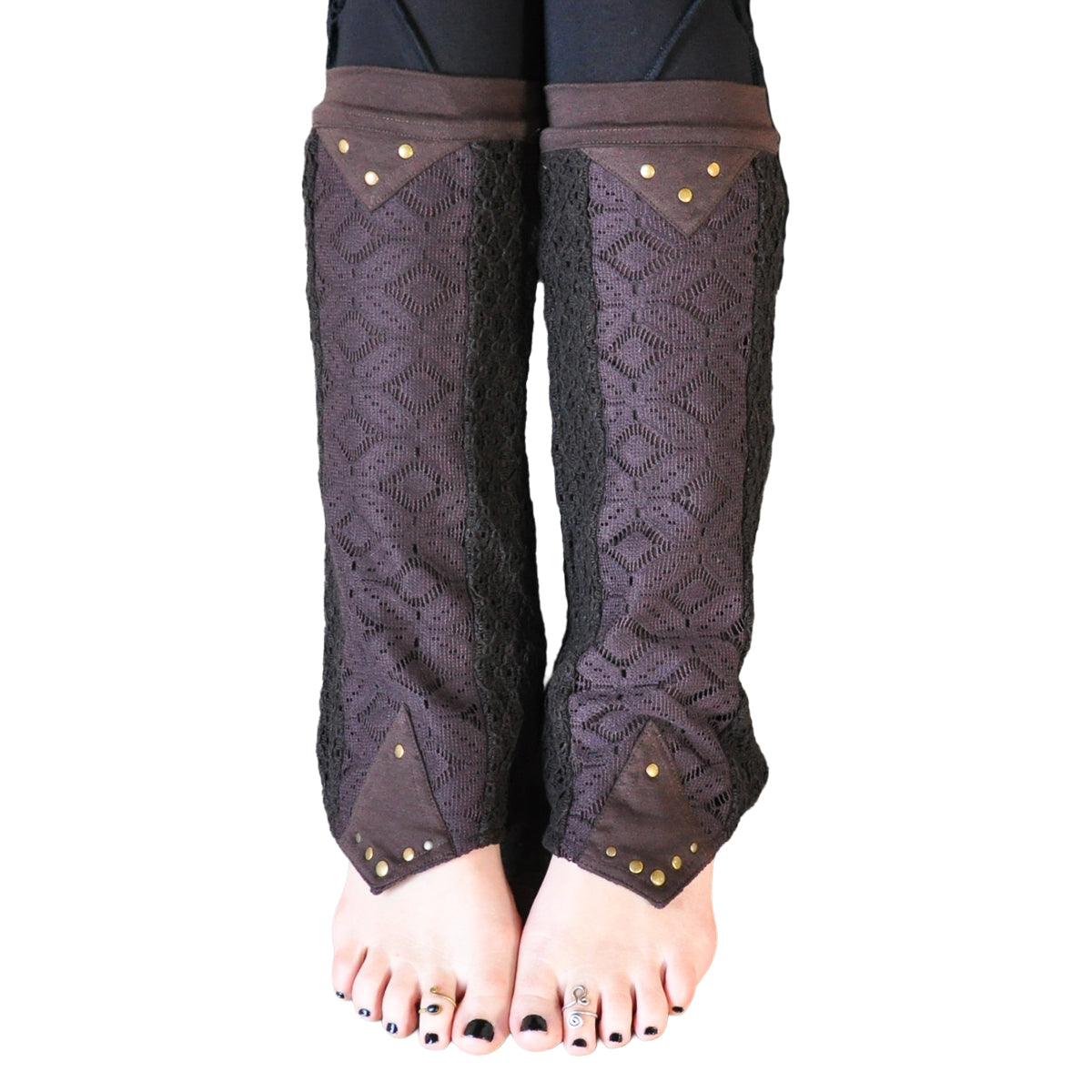 Stulpen mit Spitze und Nieten - Beinstulpen, Gamaschen - braun