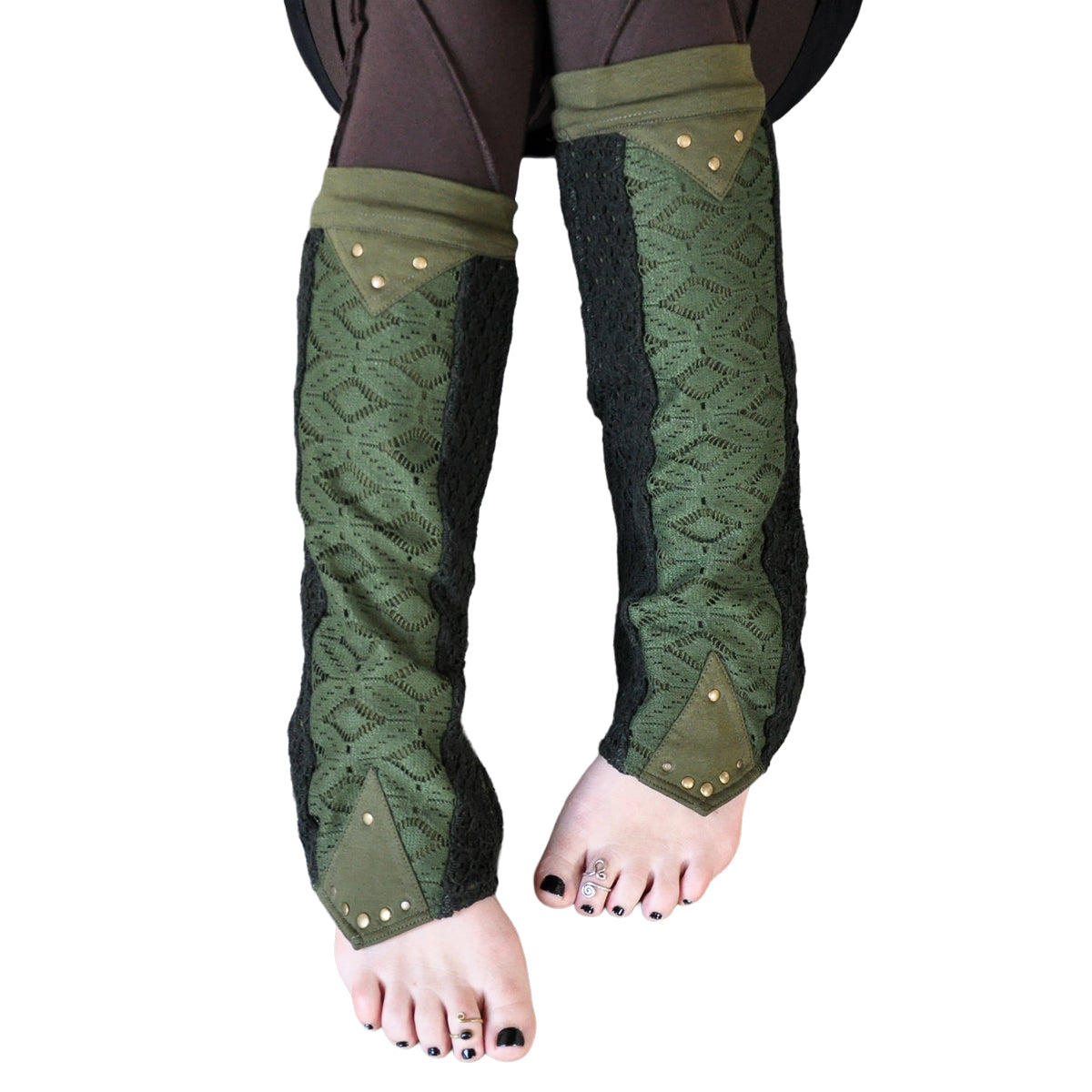 Stulpen mit Spitze und Nieten - Beinstulpen, Gamaschen - waldgrün