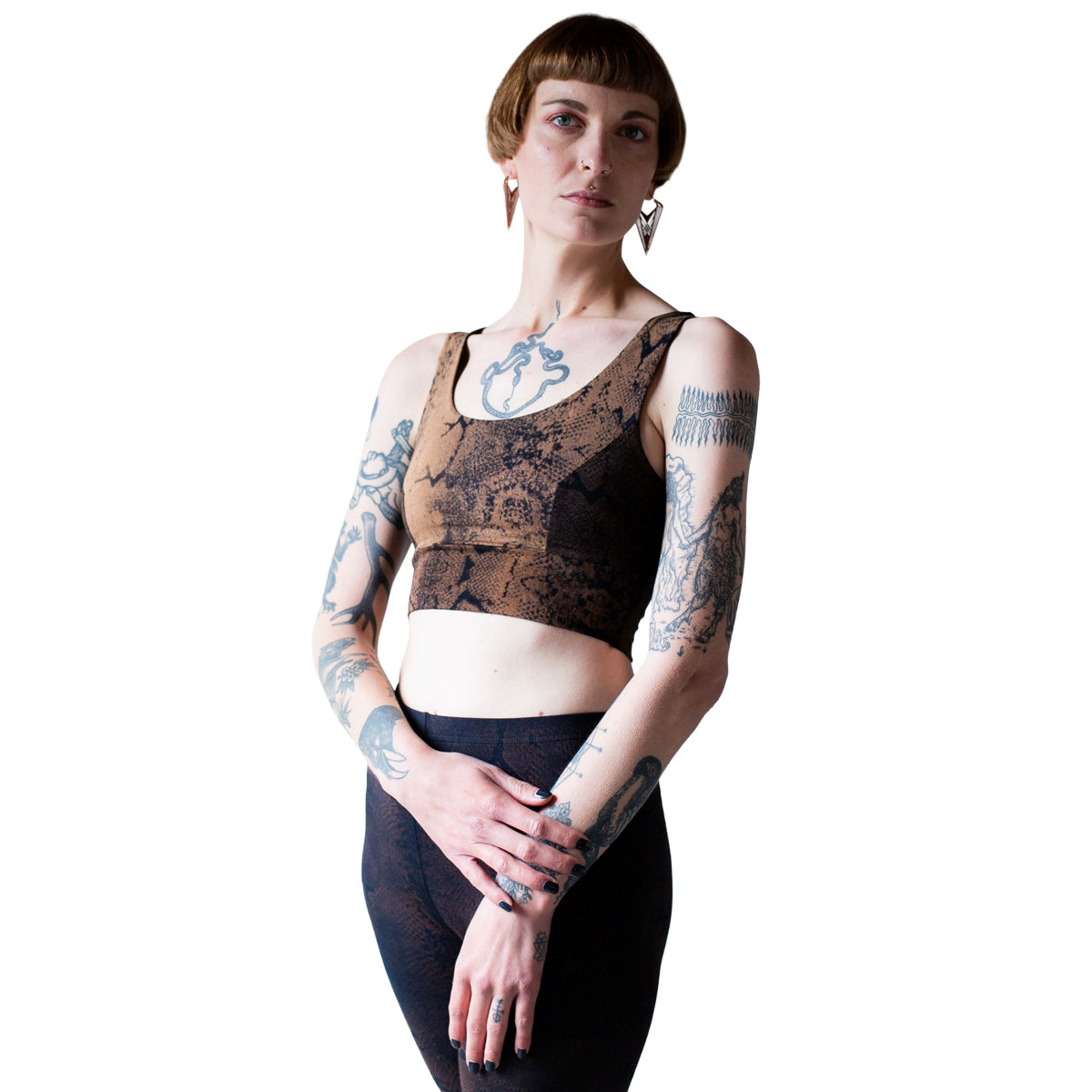Bequemes Bra Top, ungepolstert, mit künstlerisch ungleichmäßigem Schlangenmuster.